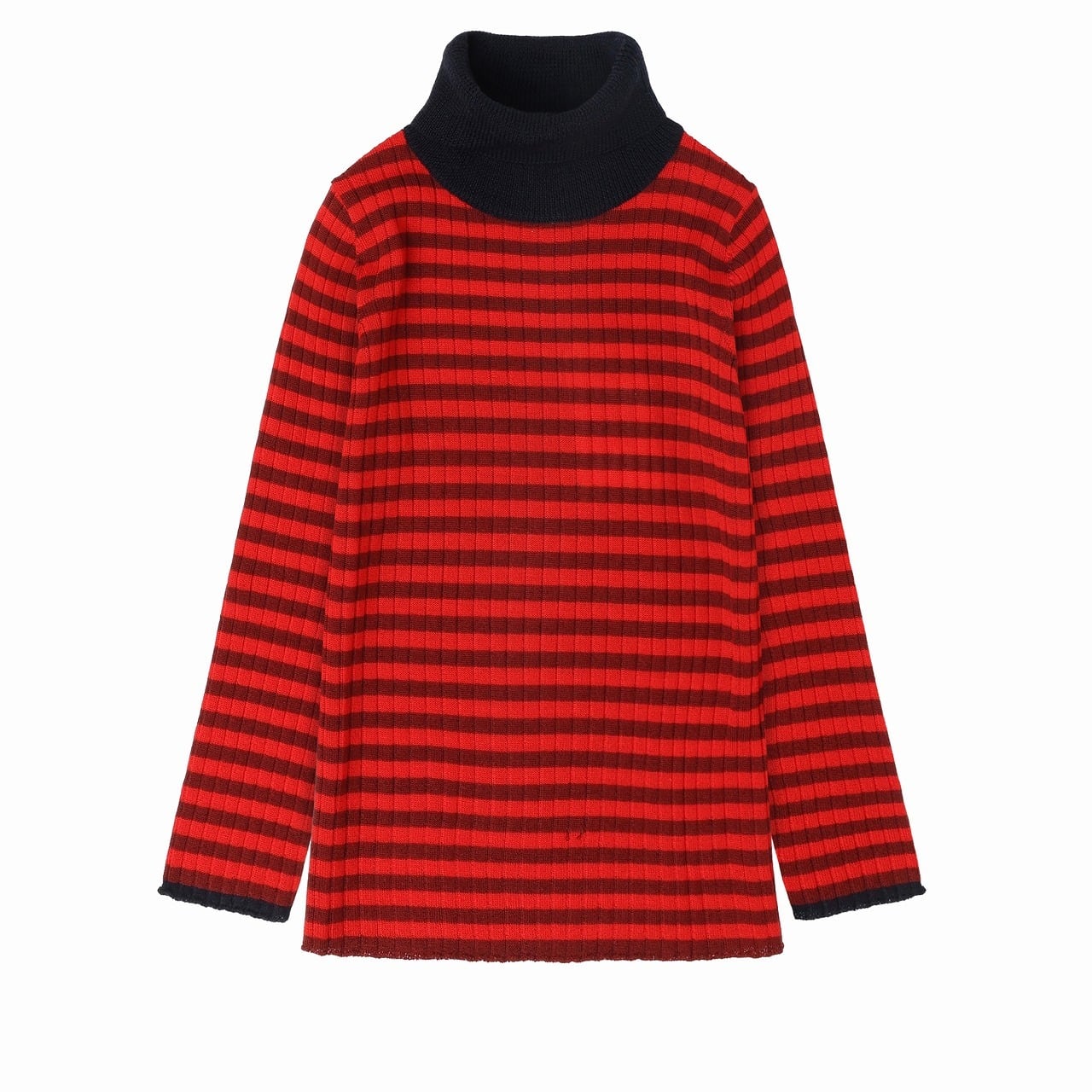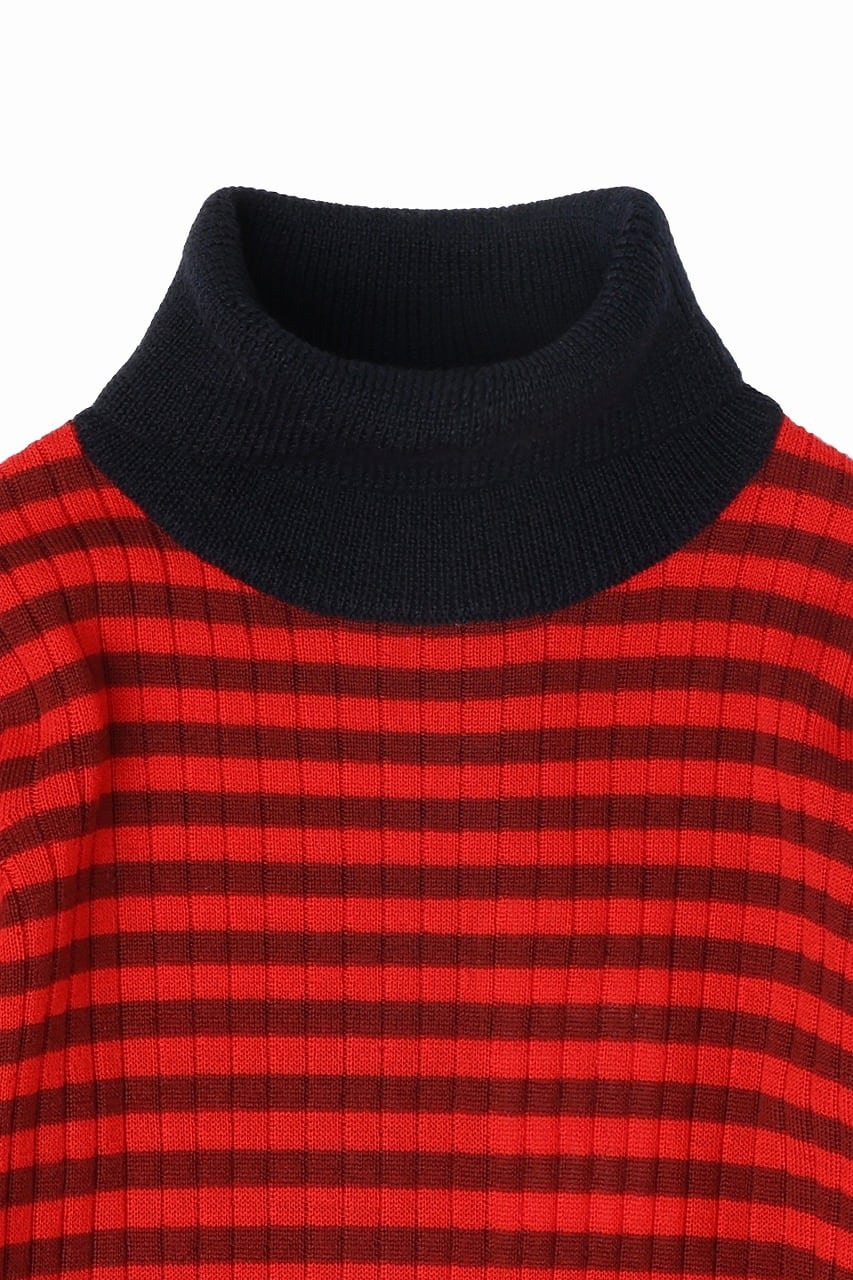 エクストラファインメリノウールを使用したタートルネックニットです。リブ編みとストレートでスリムなシルエットに、コントラストカラーのロールネックと袖口が印象的な一枚。使用しているメリノウールはBLUESIGN®およびRWS認証を取得しており、有害な化学物質を含まず、ミュールジング手術を行っていない羊の毛から作られています。