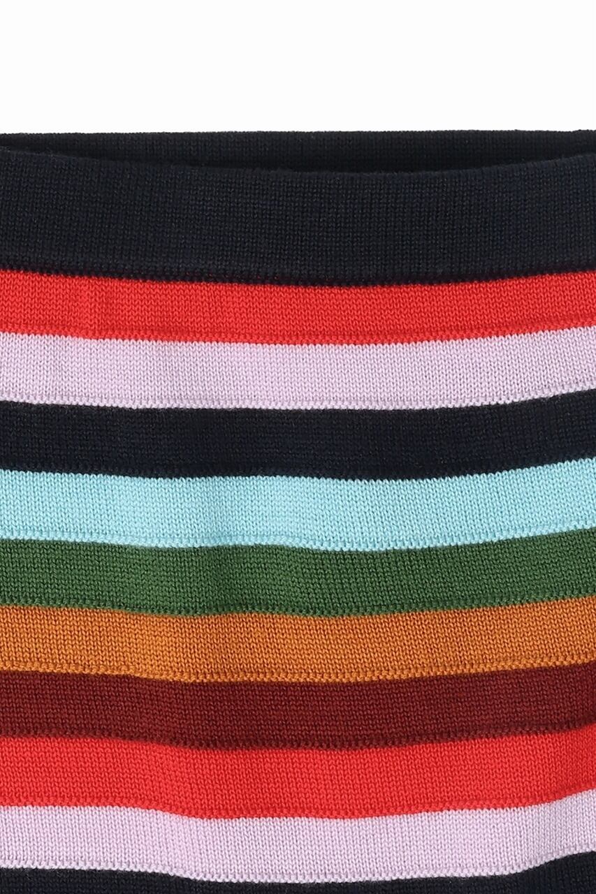 ピュアメリノウールを使用したAラインスカート。マルチストライプのしっかりとしたシングルジャージー編み地に裏編みラインを施しています。使用されるメリノウールはBLUESIGN®およびRWS認証を取得しており、有害な化学物質を含まず、ミューシグ手術を行っていない羊の毛から作られています。同シリーズのポロセーターとのセットアップは、ちょっとしたお出かけにもおすすめ。<FUB>のソックスとも好相性です。