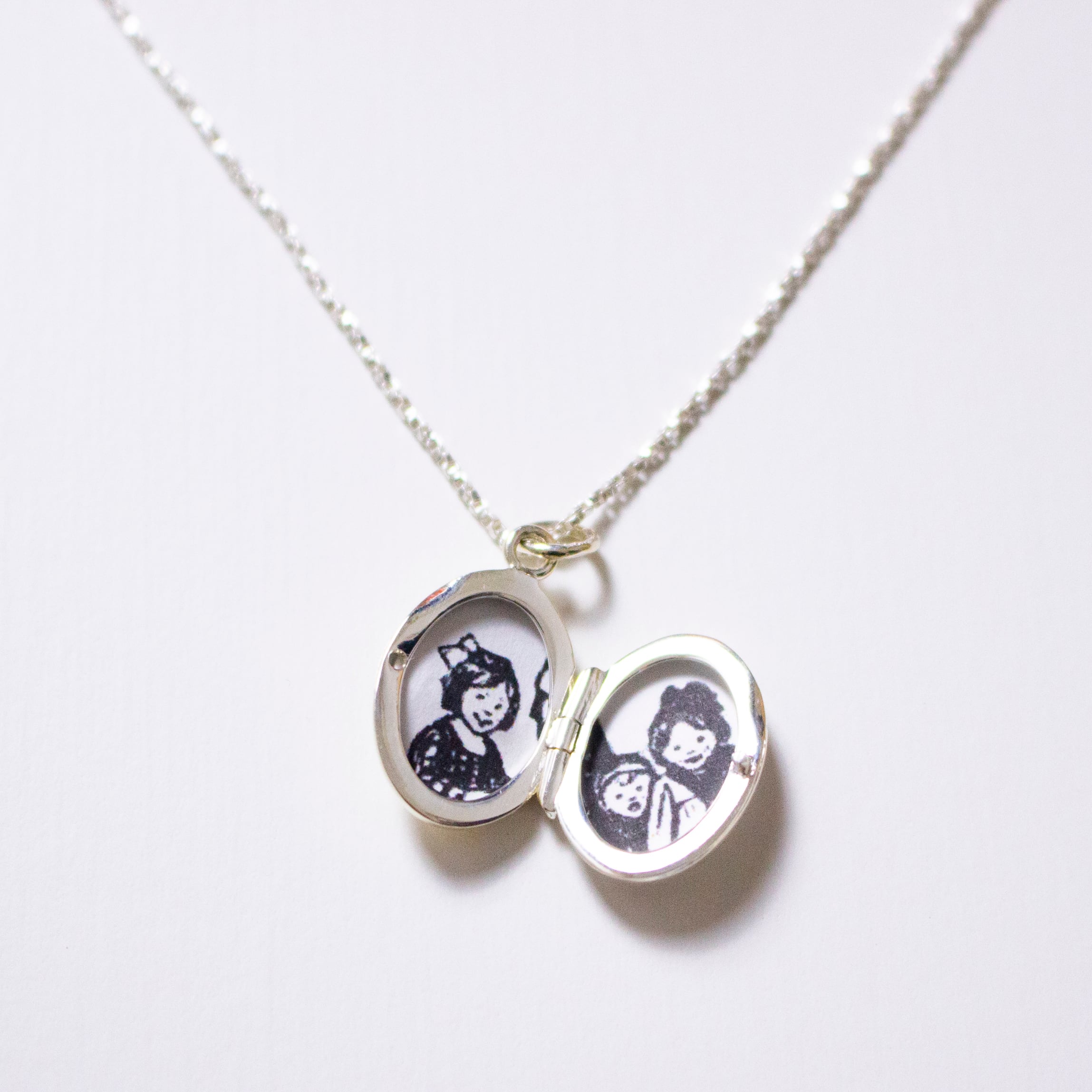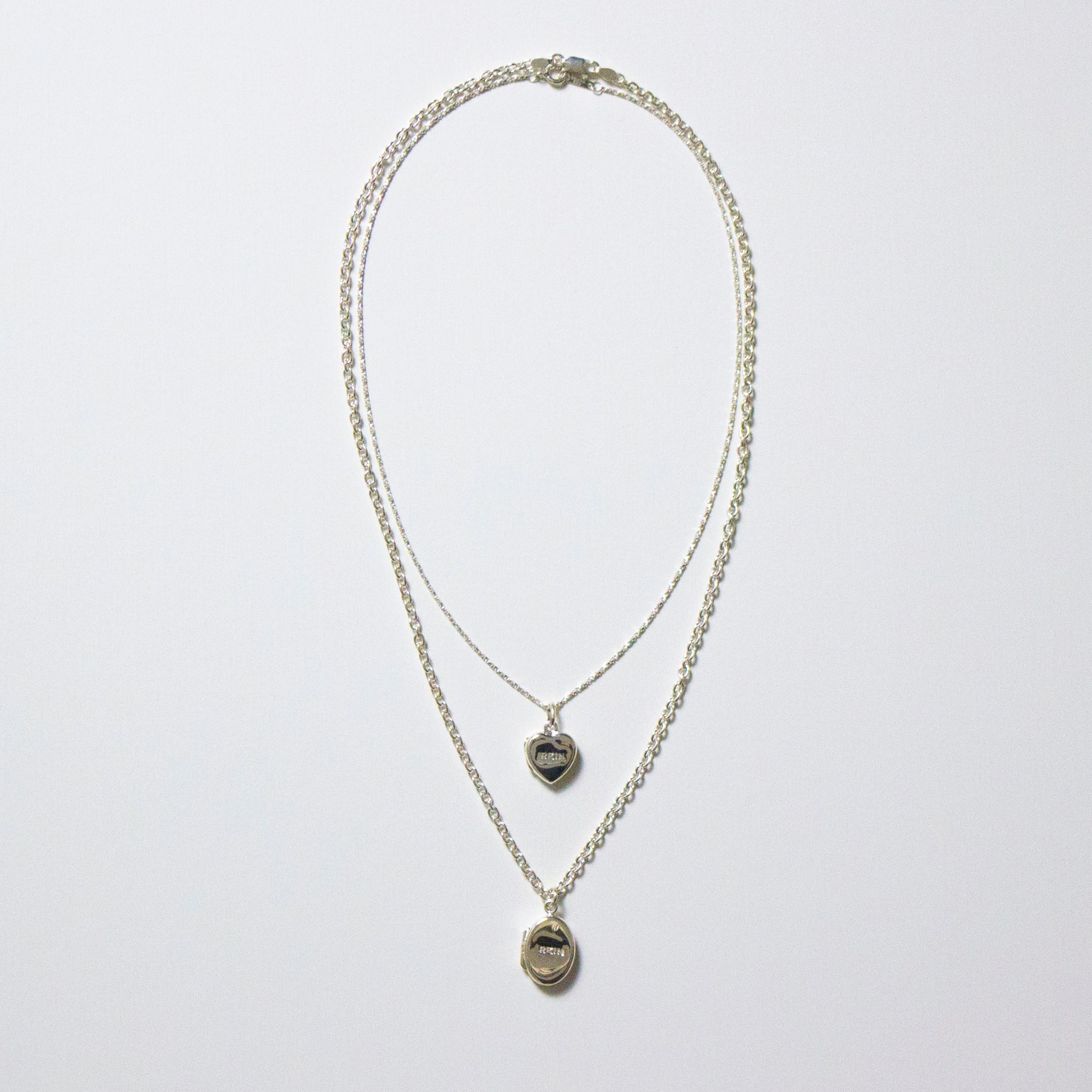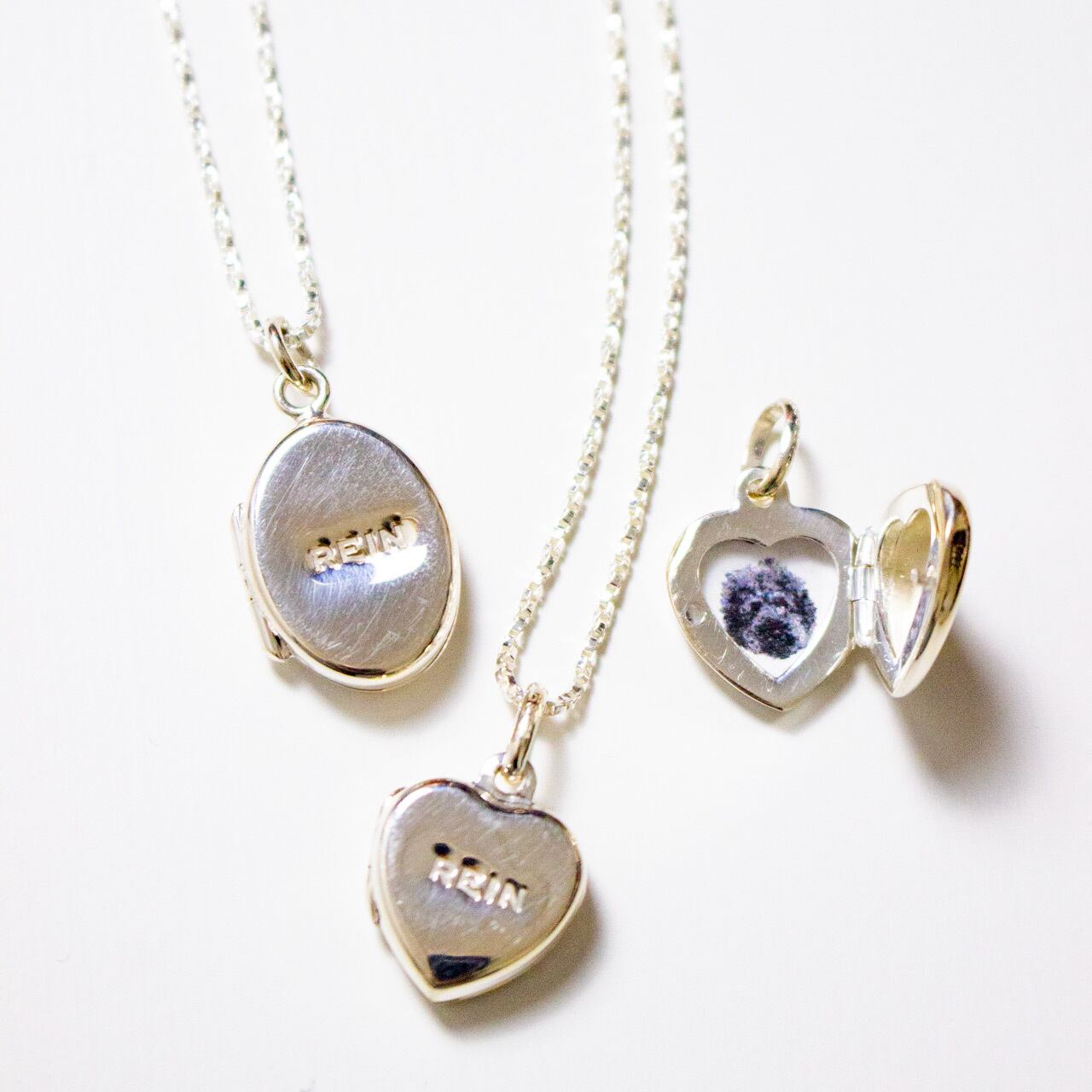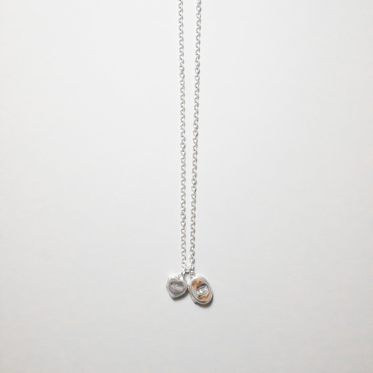 ロケットペンダントに華奢なボックスチェーンをセット。「オーバル型」と「ハート形」の2種のヘッドと、40cmと50cmのチェーンをご用意しました。彫りのないフラットな面が珍しく、シンプルなデザインはコーディネートを選びません。長さの違うチェーンネックレスを重ねたり、単品販売のペンダントヘッドをプラスした2個付けもおすすめです。大切な写真を入れたお守り代わりやギフトにも。わたしは子供とペットの写真、子供のリクエストでウルトラマンの写真を入れて毎日身に着けています。