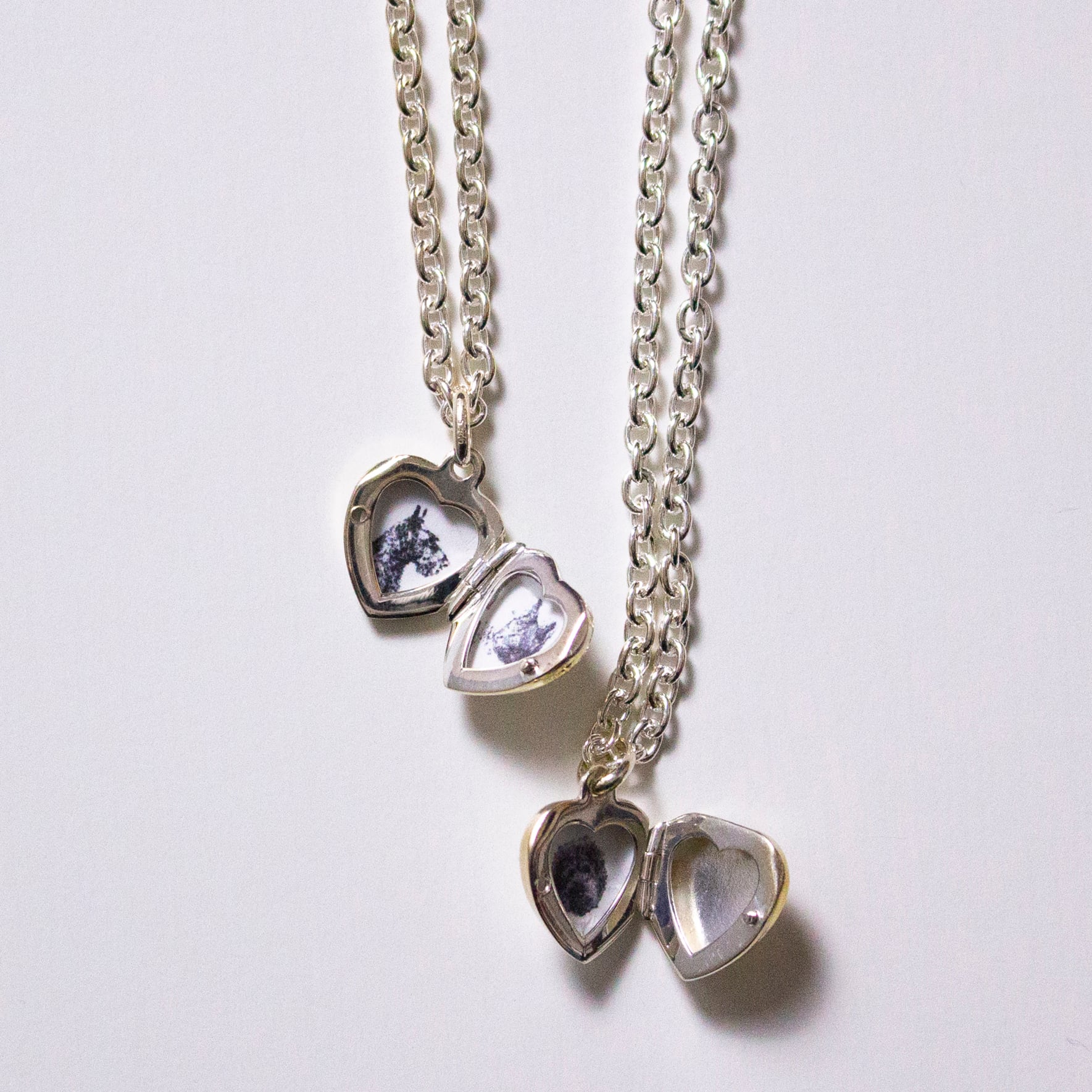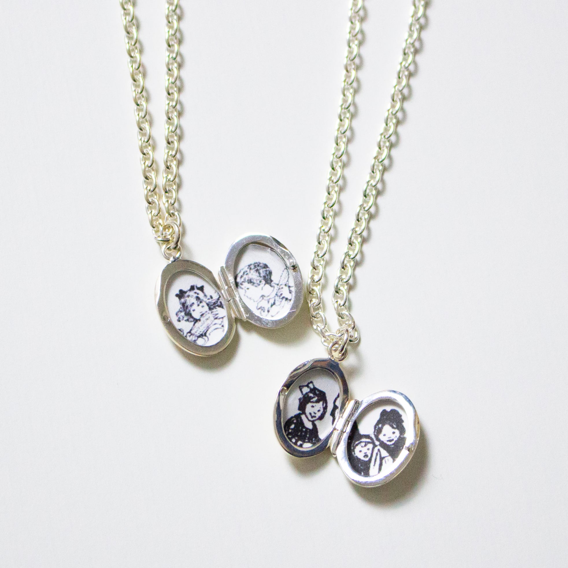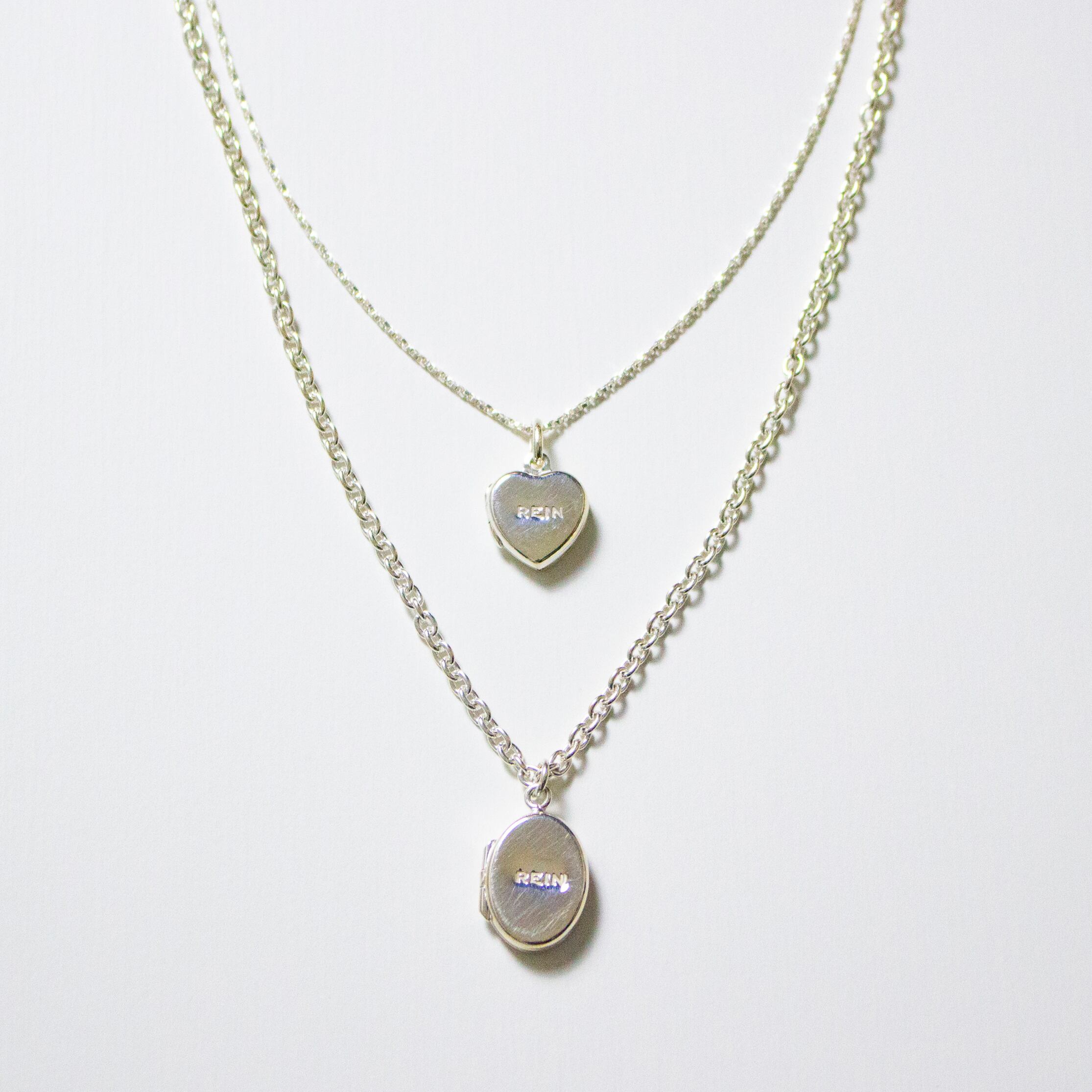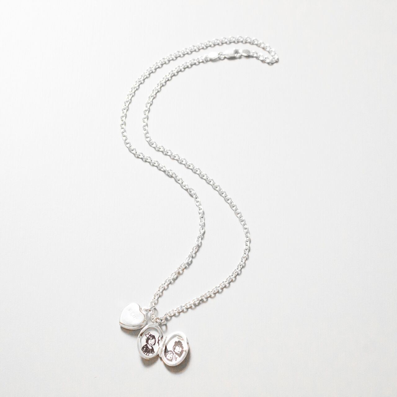 ロケットペンダントに存在感のあるケーブルチェーンをセット。「オーバル型」と「ハート形」の2種のヘッドと、40cmと50cmのチェーンをご用意しました。彫りのないフラットな面が珍しく、シンプルなデザインはコーディネートを選びません。長さの違うチェーンネックレスを重ねたり、単品販売のペンダントヘッドをプラスした2個付けもおすすめです。大切な写真を入れたお守り代わりやギフトにも。わたしは子供とペットの写真、子供のリクエストでウルトラマンの写真を入れて毎日身に着けています。