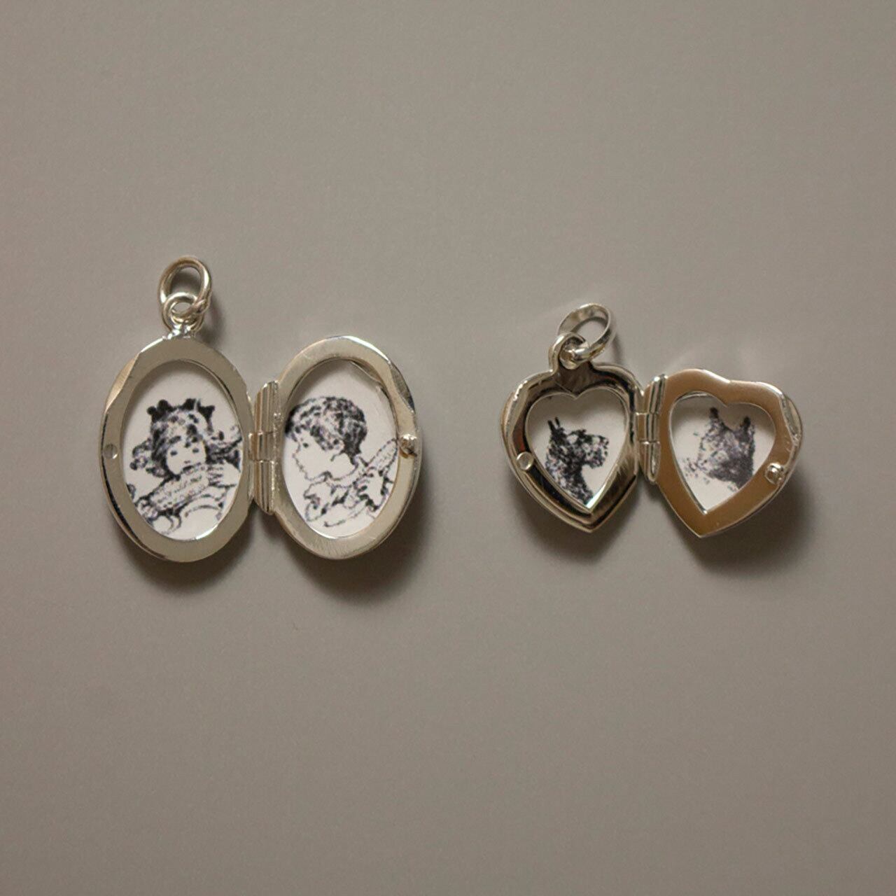 「オーバル型」または「ハート形」のロケットペンダントの単品です。彫りのないフラットな面が珍しく、シンプルなデザインはコーディネートを選びません。チェーン付きロケットペンダント(別ページ)に追加してヘッドの重ね付けにもお使いいただけます。大切な写真を入れたお守り代わりやギフトにも。