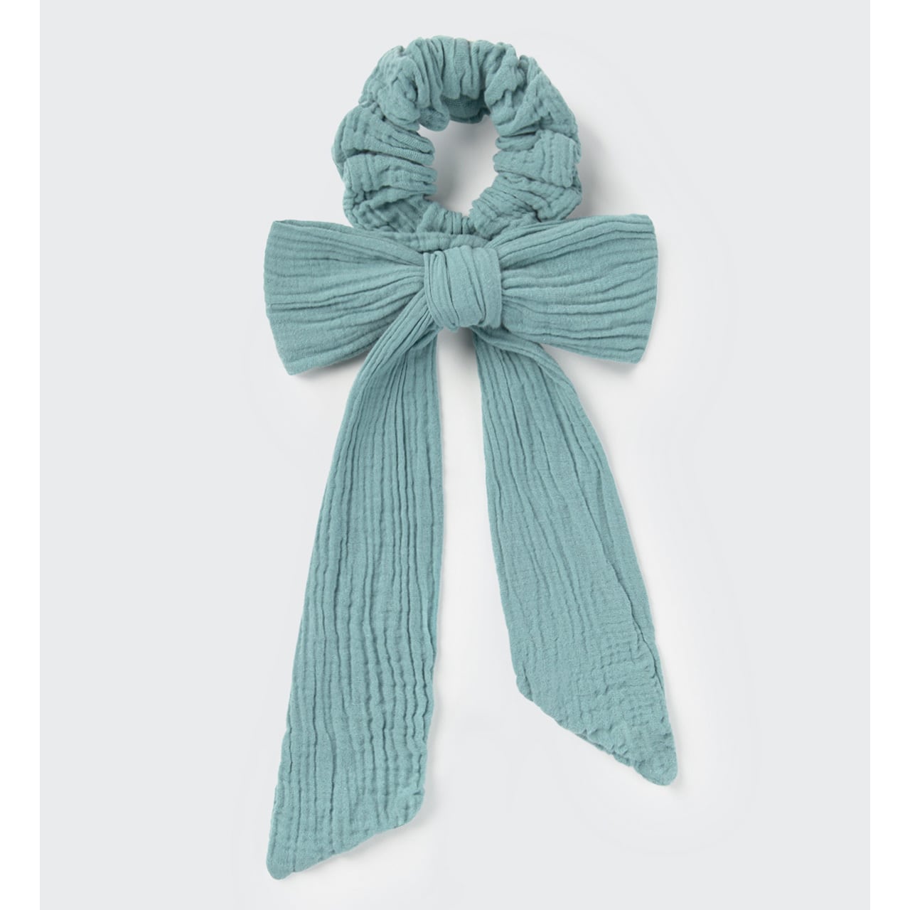 コットン楊柳素材でできたボウタイリボン付きのシュシュです。ガーゼのように柔らかく、軽く、大きめで存在感があり、大人の方もお使いいただけます。ヘアはもちろん、手首につけてコーディネートのアクセントに。ギフトにもおすすめです。色違いもございます。