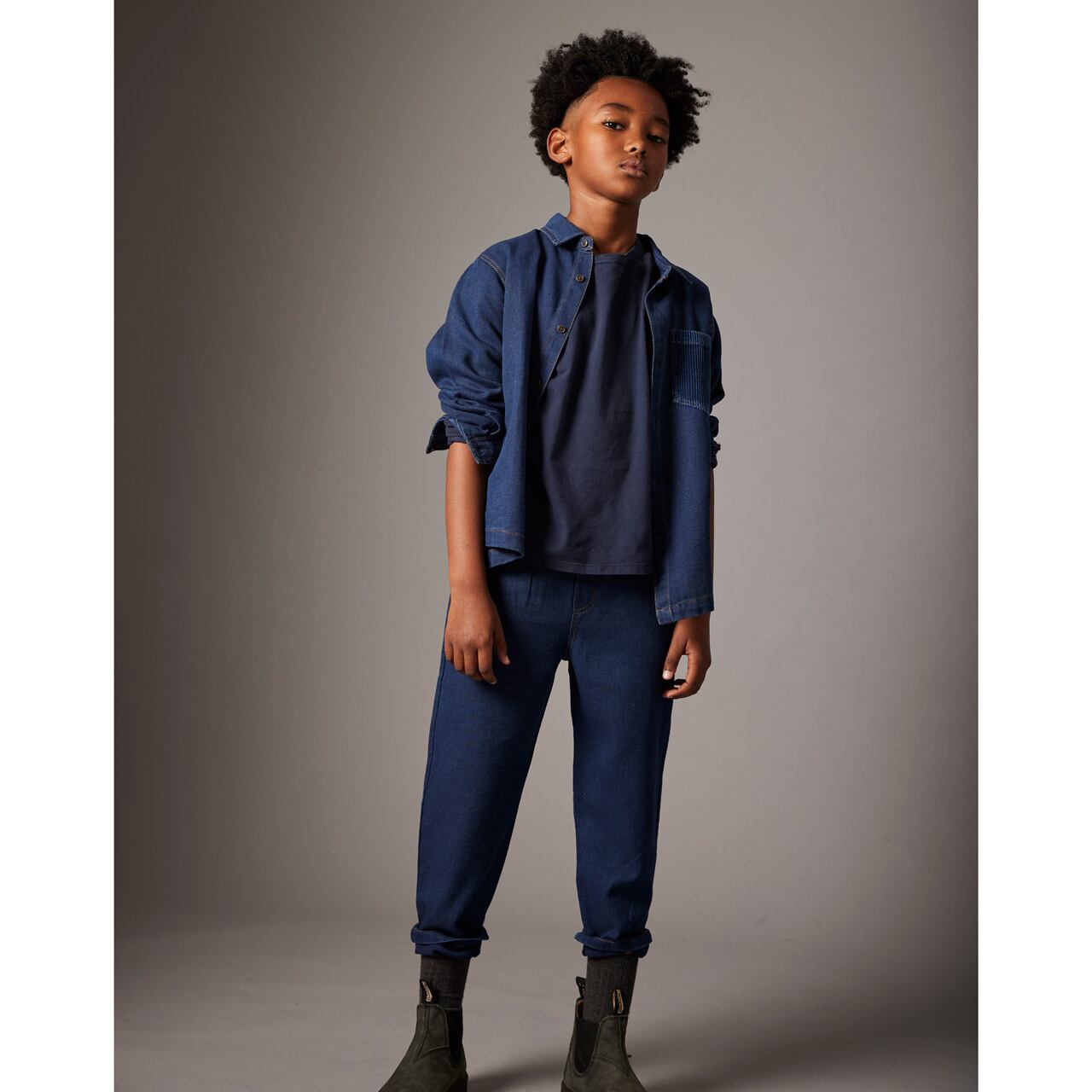 ベター・コットン・イニシアティブ(BCI)認証のサステナブルコットン100%を使用したデニムパンツです。独特のツイル織りで仕立て、伸縮性のある調節可能なウエストバンドにより、快適なはき心地。デニムコーデュロイ素材のベルトループが、さりげなく風合いを添えています。サイドポケットに加え、両サイドとバックには同素材のパッチポケットを配し、実用性とデザイン性を両立、バックスタイルも完璧です。モックフライ仕様で、裾と膝に施された控えめな折り目が上品な印象を与えます。耐久性にも優れ、お子さまのワードローブにふさわしい、サステナブルな一着です。