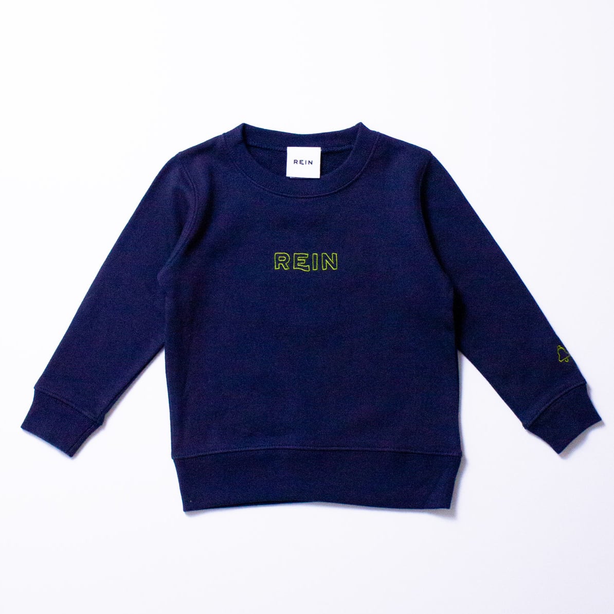 ブランドタグは、チクチク知らずの肌触りの良いコットン素材でできており、胸元のブランドロゴと、袖のシグネチャーであるベルは、各ボディとの配色にこだわり、やや立体感のあるアウトライン刺繍で仕上げています。