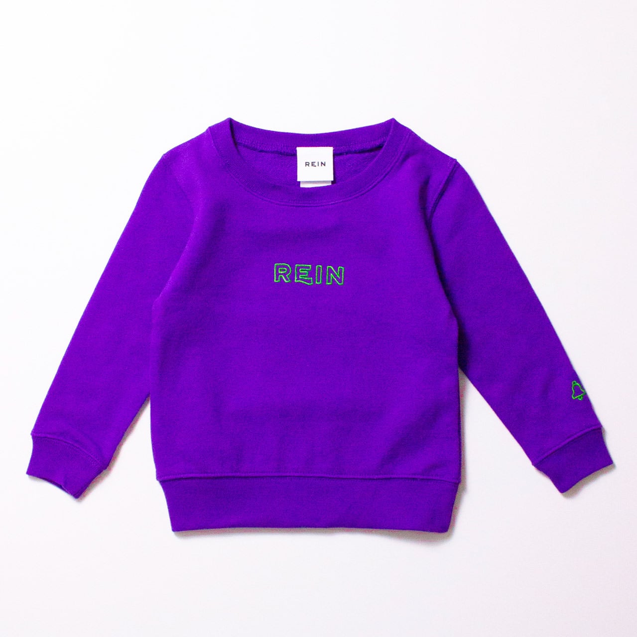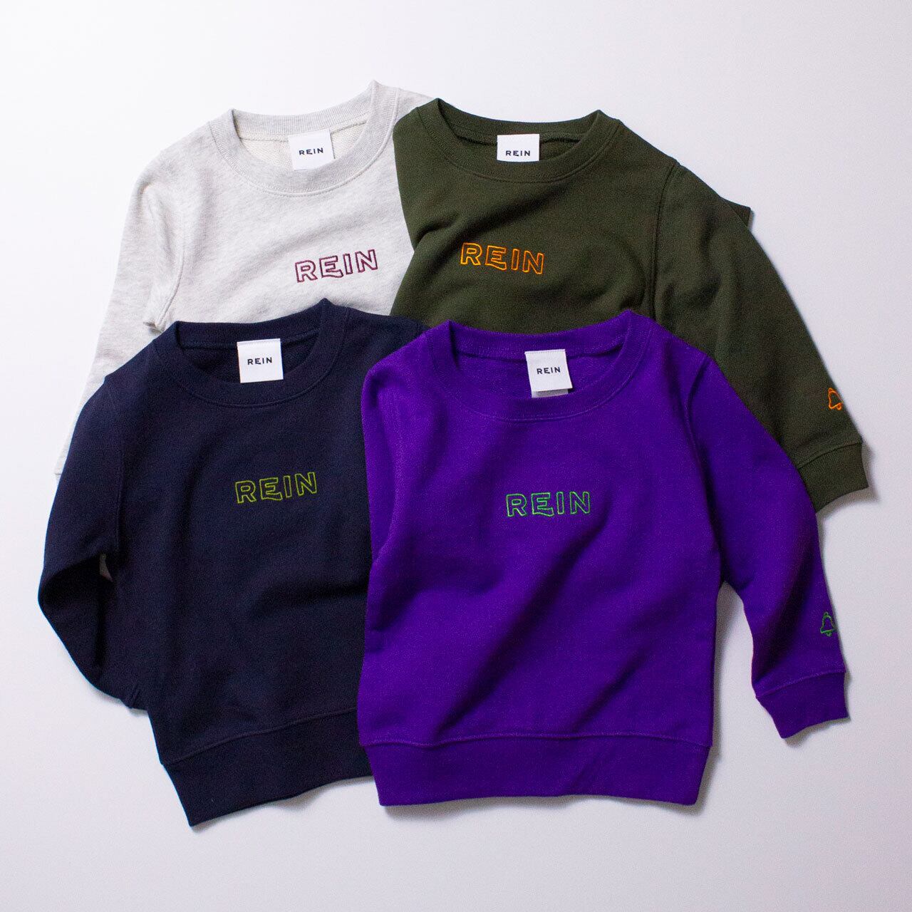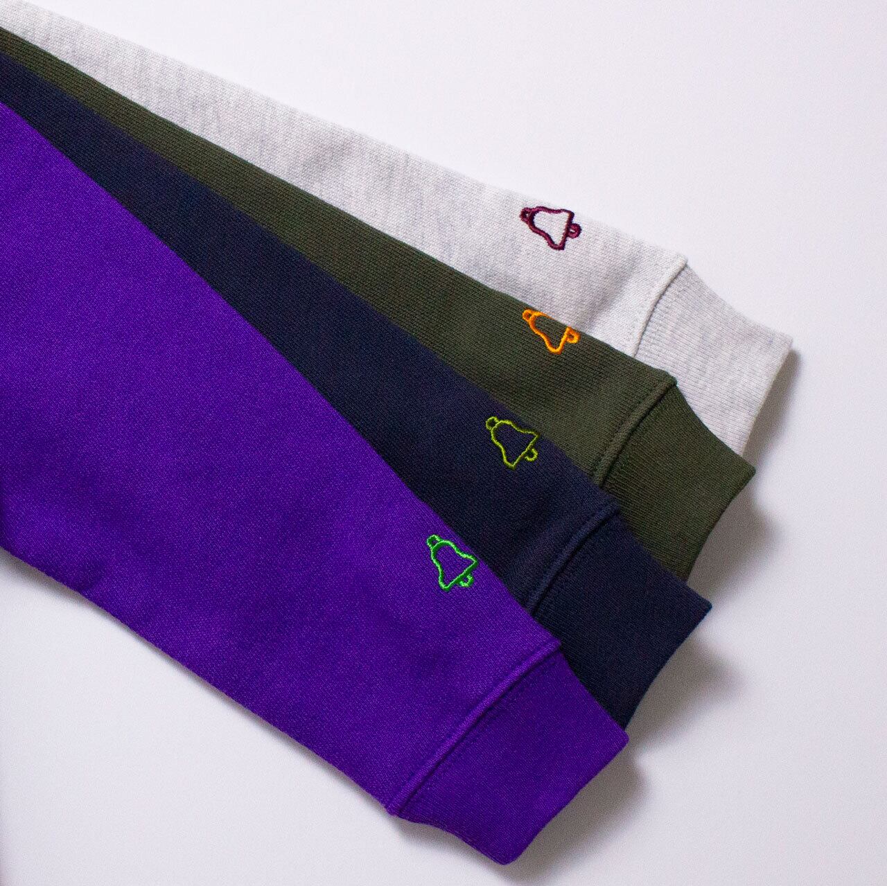 ブランドタグは、チクチク知らずの肌触りの良いコットン素材でできており、胸元のブランドロゴと、袖のシグネチャーであるベルは、各ボディとの配色にこだわり、やや立体感のあるアウトライン刺繍で仕上げています。