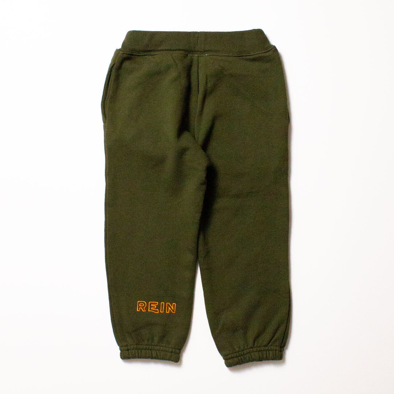 スポーツスタイルになりすぎないスウェットパンツを作りました。すっきりとした太ももまわりからまっすぐ降りたスタンダードなシルエットが子供らしくて気に入っています。足首の前後にブランドロゴとシグネチャーであるベルの刺繍を施し、後ろ姿を見せたくなるくらいバックスタイルも完璧。各ボディと刺繍の配色にこだわり、やや立体感のあるアウトライン刺繍に仕上げています。
