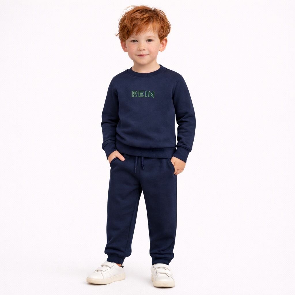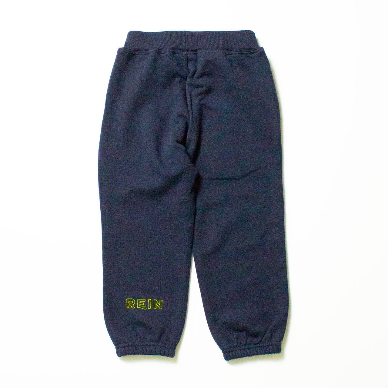 スポーツスタイルになりすぎないスウェットパンツを作りました。すっきりとした太ももまわりからまっすぐ降りたスタンダードなシルエットが子供らしくて気に入っています。足首の前後にブランドロゴとシグネチャーであるベルの刺繍を施し、後ろ姿を見せたくなるくらいバックスタイルも完璧。各ボディと刺繍の配色にこだわり、やや立体感のあるアウトライン刺繍に仕上げています。