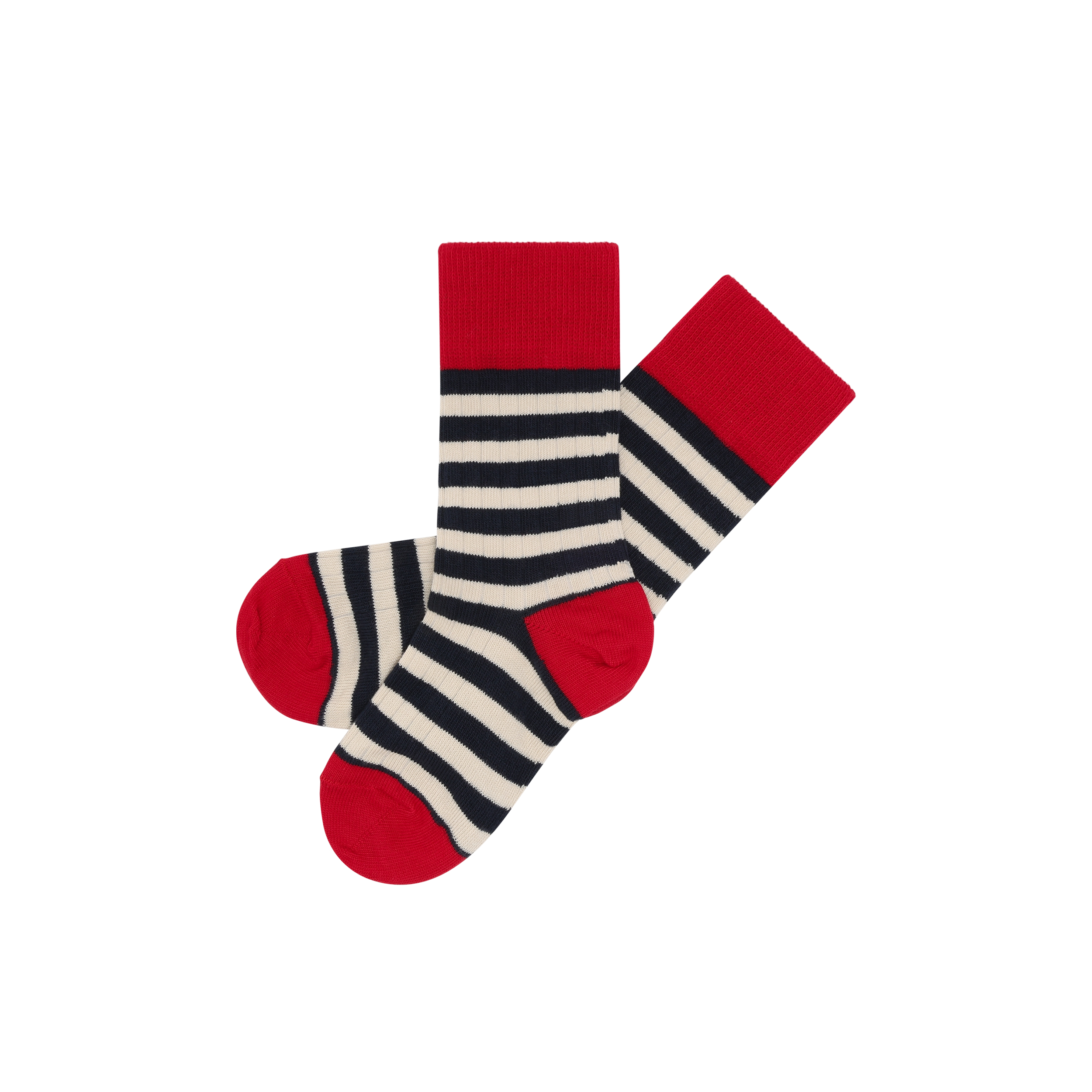 クラシックなボーダー柄に、かかと・つま先・履き口は配色で切り替えたデザイン。