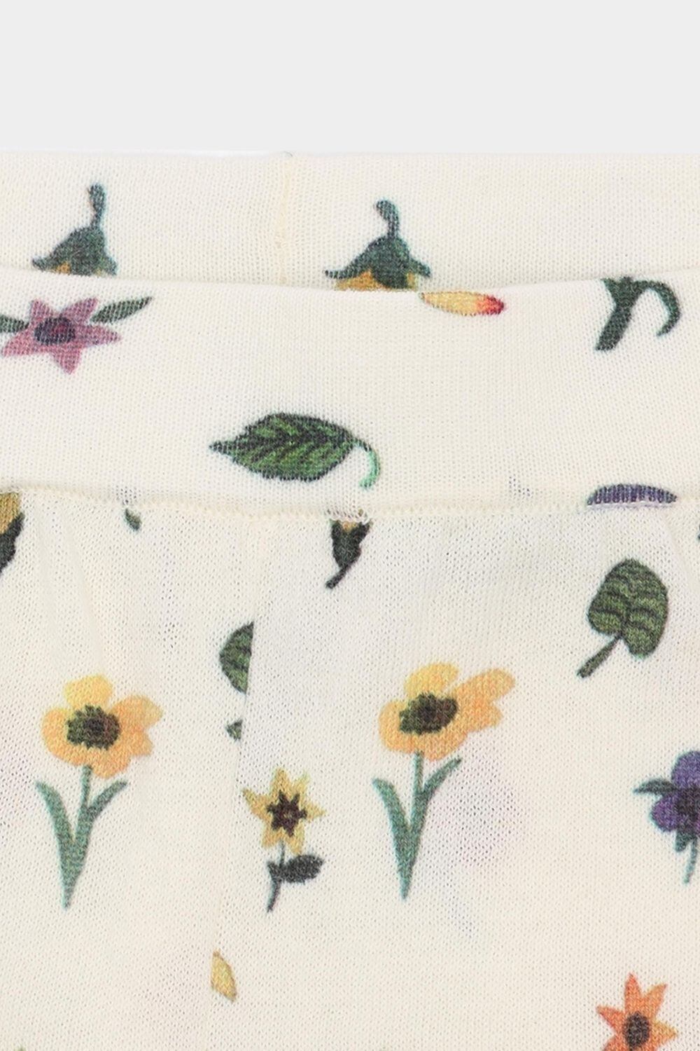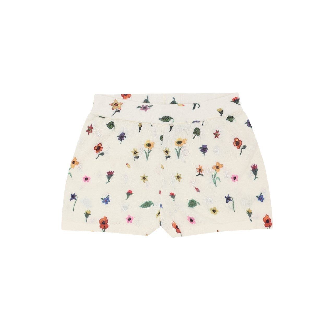 薄手でやわらかなコットン素材を使用し、総ゴム仕様のウエストで快適なフィット感のフラワープリント入りショーツ。
