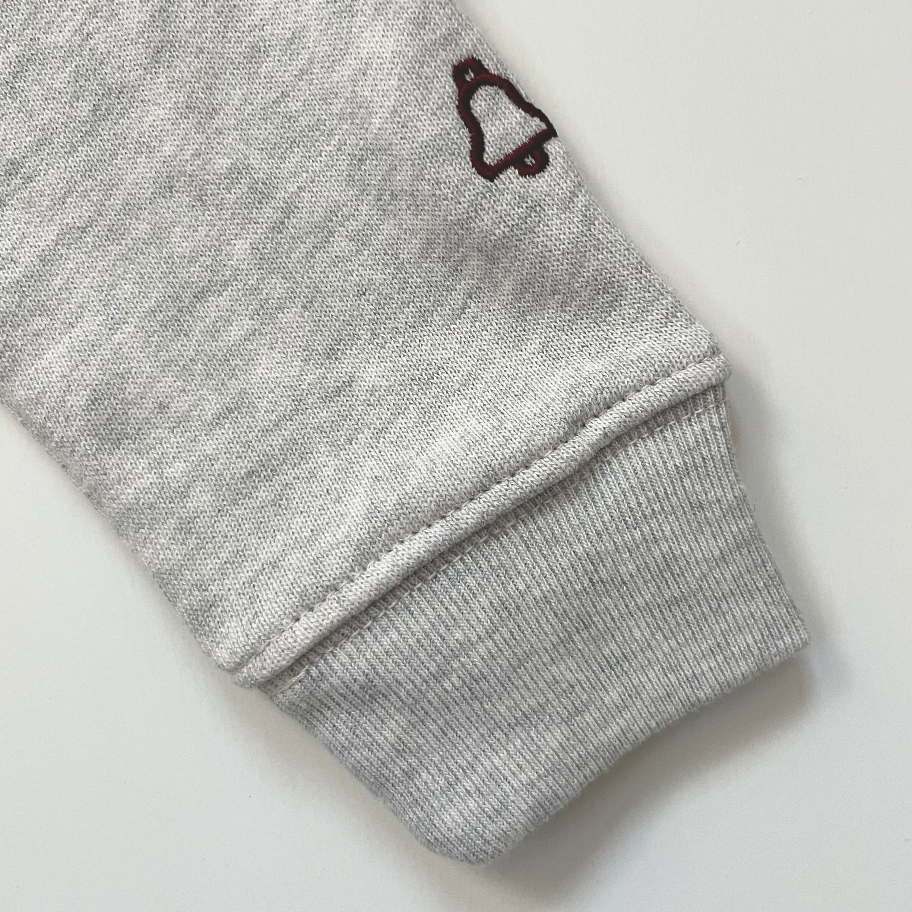 胸元のブランドロゴと袖のシグネチャーであるベルは、ボディカラーとの配色にこだわり、やや立体感のあるアウトライン刺繍で仕上げています。