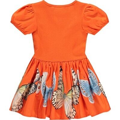 小さなお子様向けの、ギフトにもおすすめなオレンジカラーが目を引くワンピース。