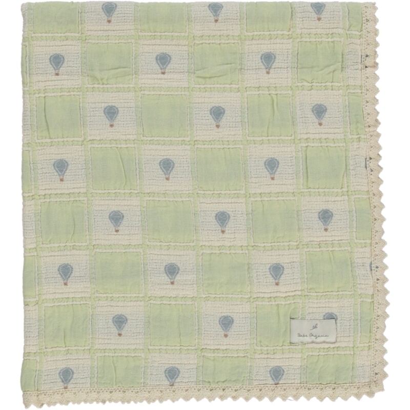 愛らしいバルーン柄が目を引く、パッチワークブランケット。
