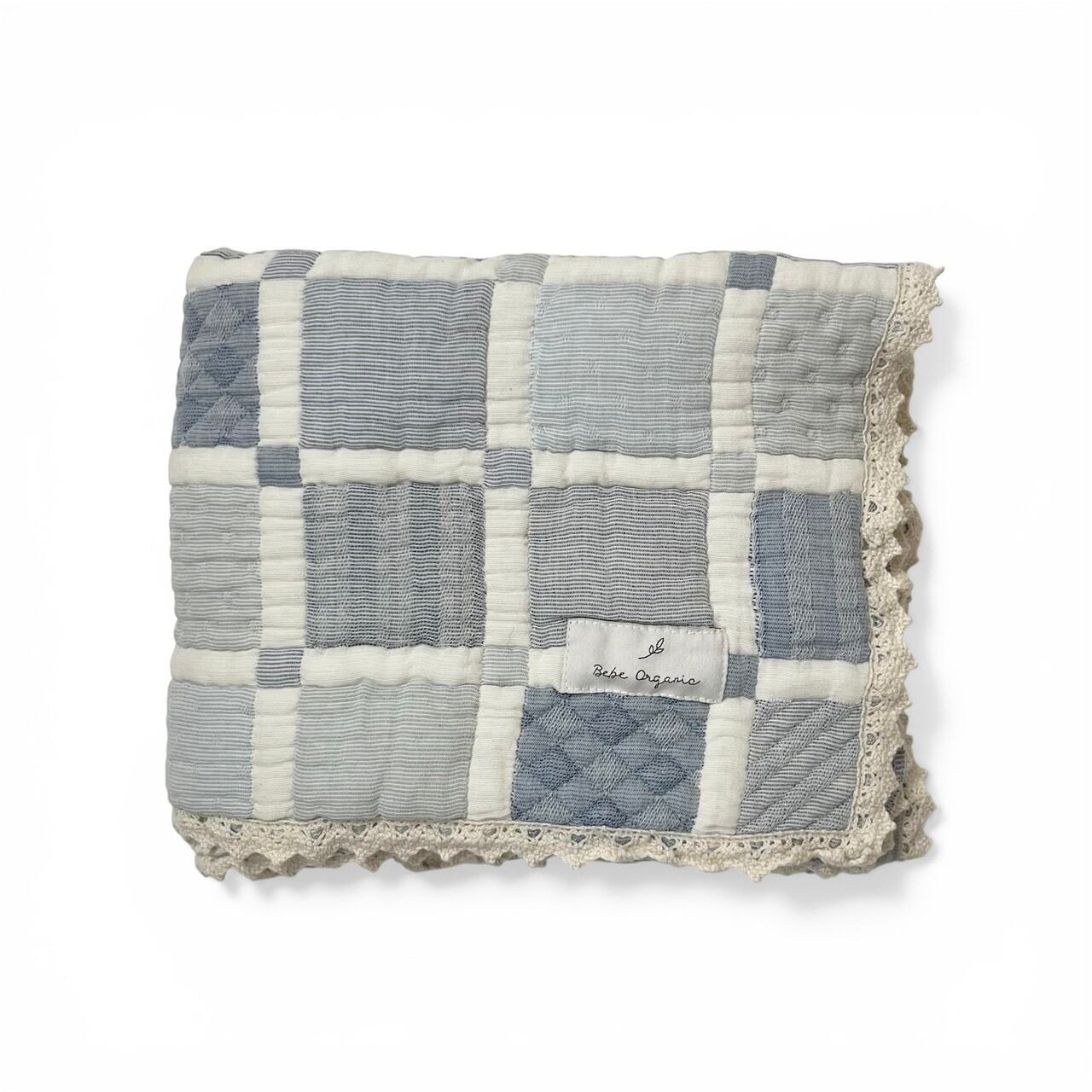 最高級のオーガニックコットン100%を使用し、縁には繊細なコットンレースをあしらった、可愛らしさあふれるデザインです。