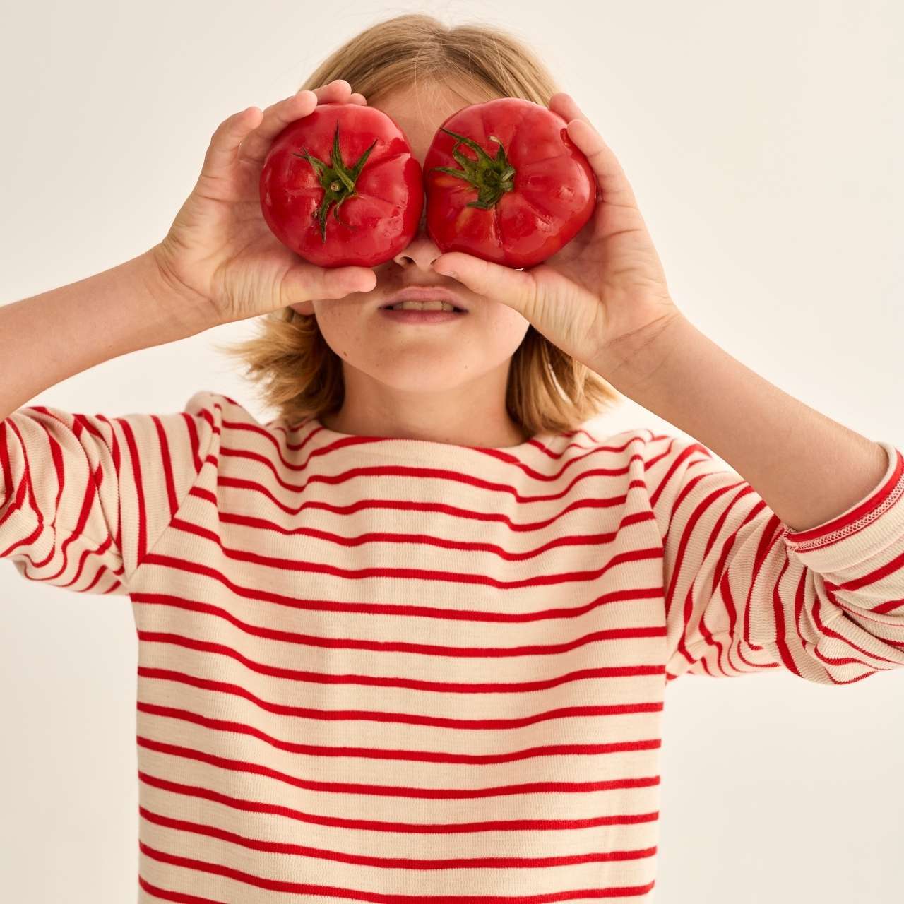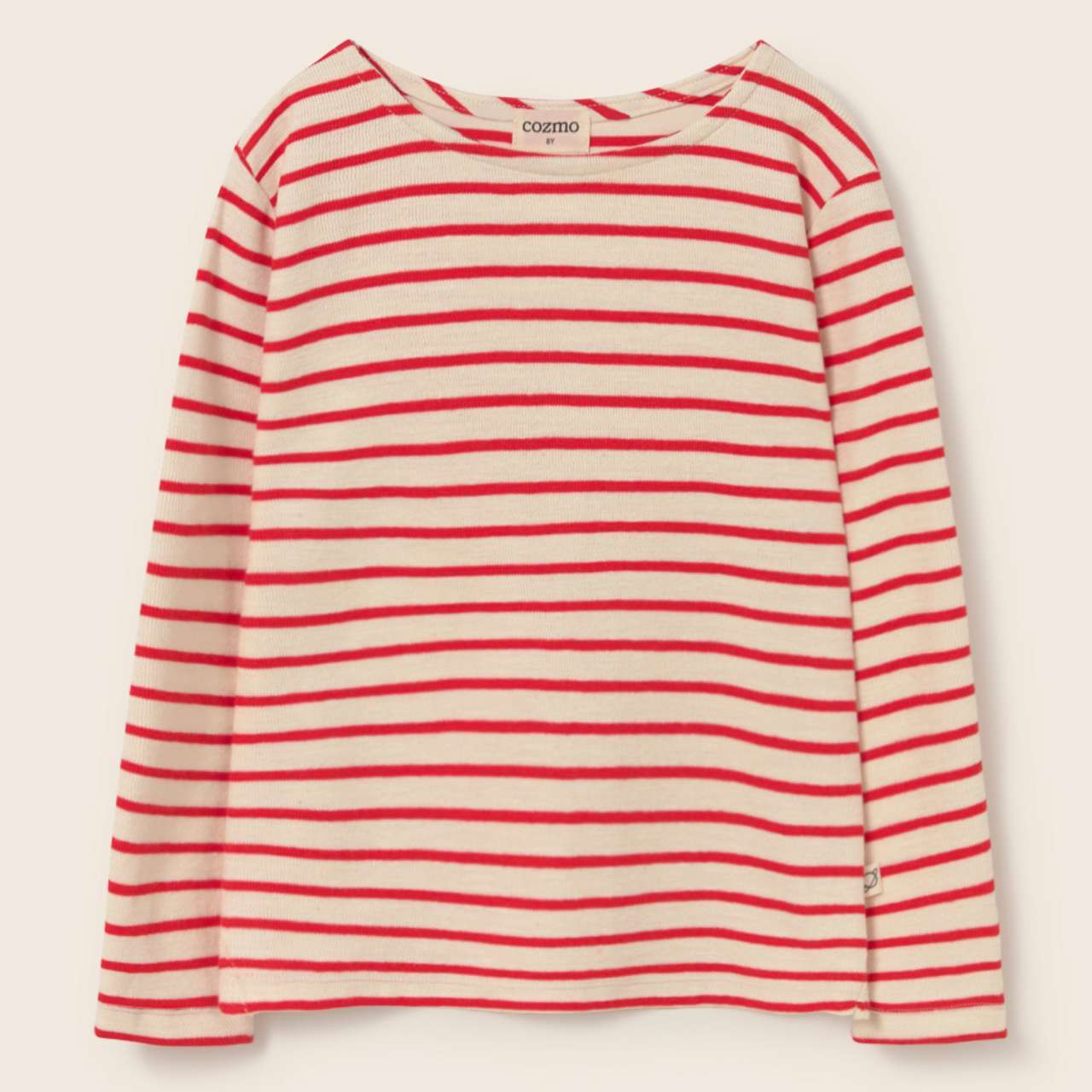 キッズ用のストライプTシャツ。ダブルフェイスコットン素材を使用しています。