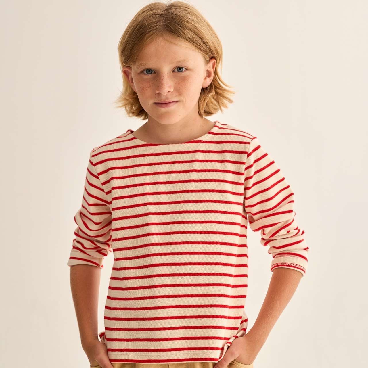 キッズ用のストライプTシャツ。ダブルフェイスコットン素材を使用しています。
