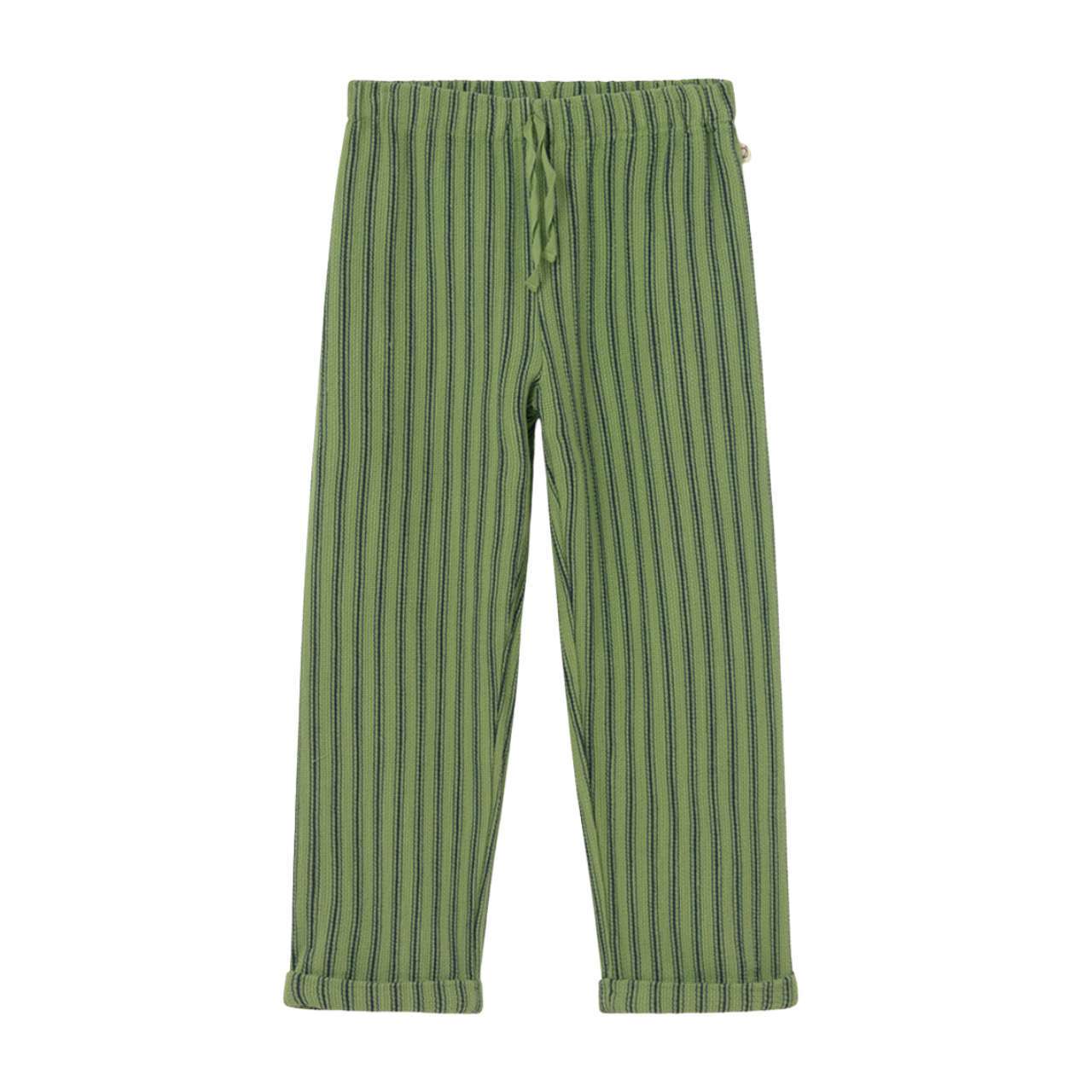 ナチュラルな風合いのストライプ柄コットン生地を使用した9分丈パンツ。
