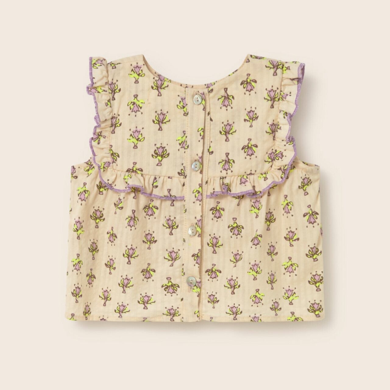 オーガニックコットン素材を使用したベビー向けノースリーブブラウス。