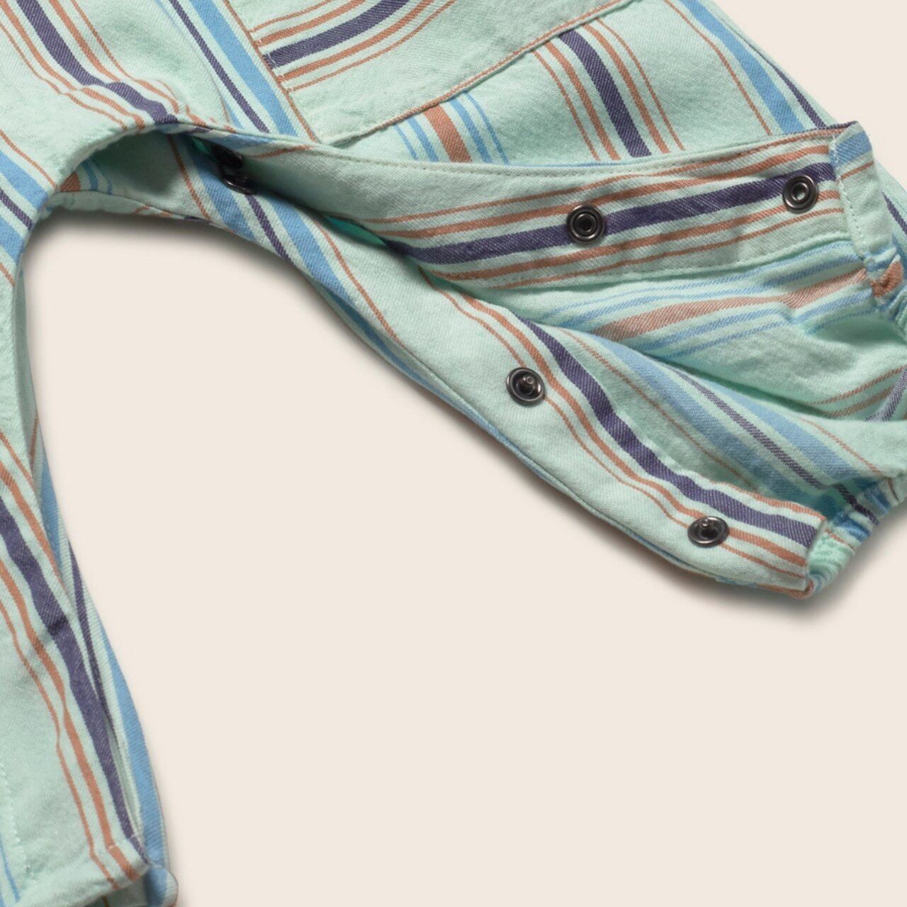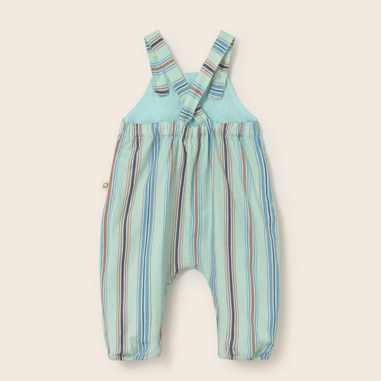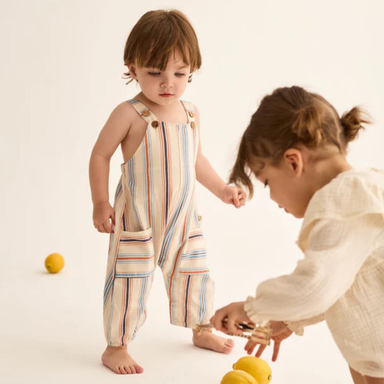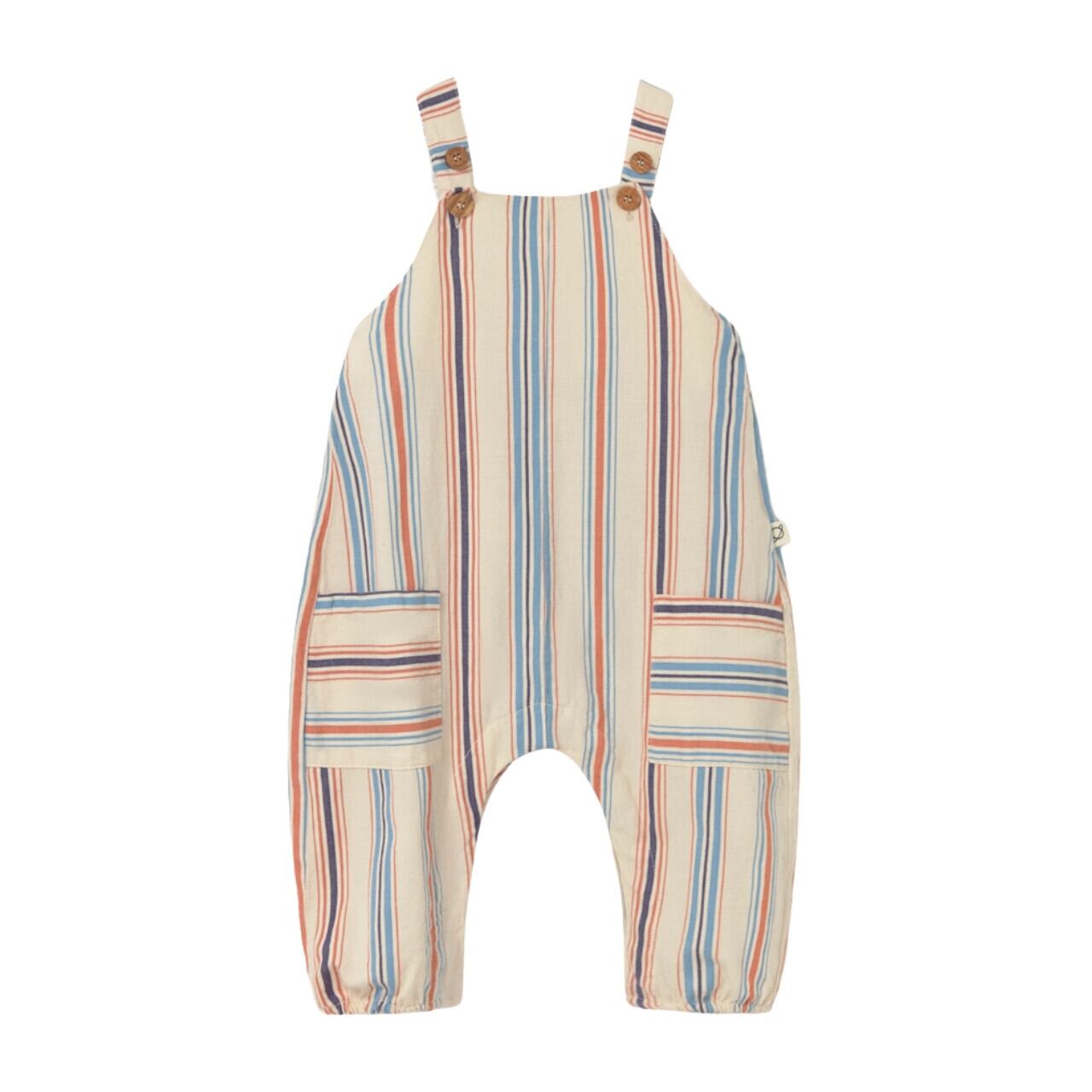 やわらかなコットン素材を使用した、ベビー・トドラー向けのストライプオーバーオール。